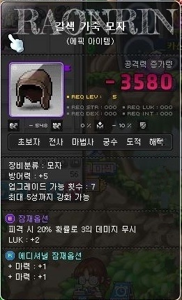 드디어 망할 가죽 모자에 에픽 띄우고 수큡 돌렸는데, 역시나 두줄짜리는 안 나와서 그냥 한줄 짜리로 결정