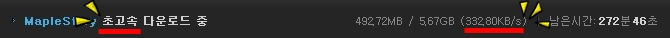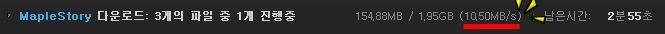 메이플 스토리 다운로드를 눌러놓고 조금있다가 보니 하나도 다운이 안 되서 속도를 보니