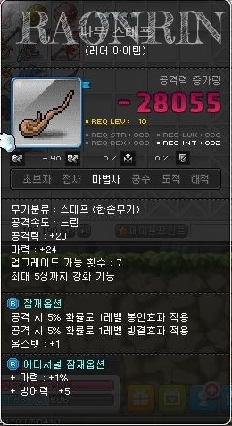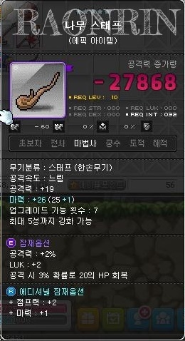 마력에 윗줄에라도 붙으면 팔텐데 참 애매하게 붙었고, 잡옵, 에픽……. 누가 사갈 사람 있으려나……